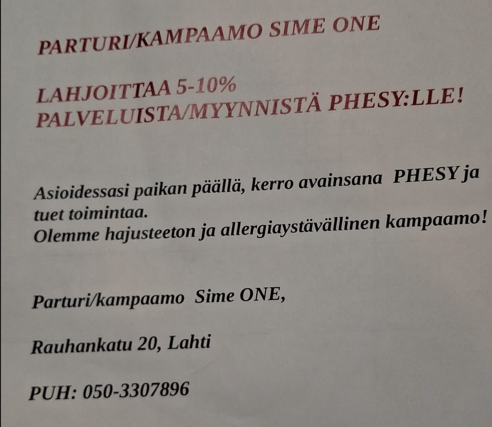 Phesyn POP-UP kirppis Rautatienkatu 1 Lahti, avoinna ma, ke, pe klo 11 - 17. Edulliset hinnat! Tervetuloa!